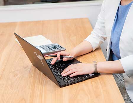毎月お客様を訪問し、監査を行うのが私の主な業務。最近はWebも活用しています。担当するお客様は、業種も企業規模もさまざまです。経理担当者がおられる企業の場合は、お客様の会計入力の内容に誤りがないか、税務上リスクのあるような取引がないかをチェック。小規模のお客様の場合は、入力業務も請け負います。そして毎月の状況について経営者の方とお話しし、今後の方向性や計画、それを実現するためには何が必要か、たとえば資金繰りなどご本人が気づいていない懸念点などについても、ディスカッションしながらアドバイスさせていただいています。
